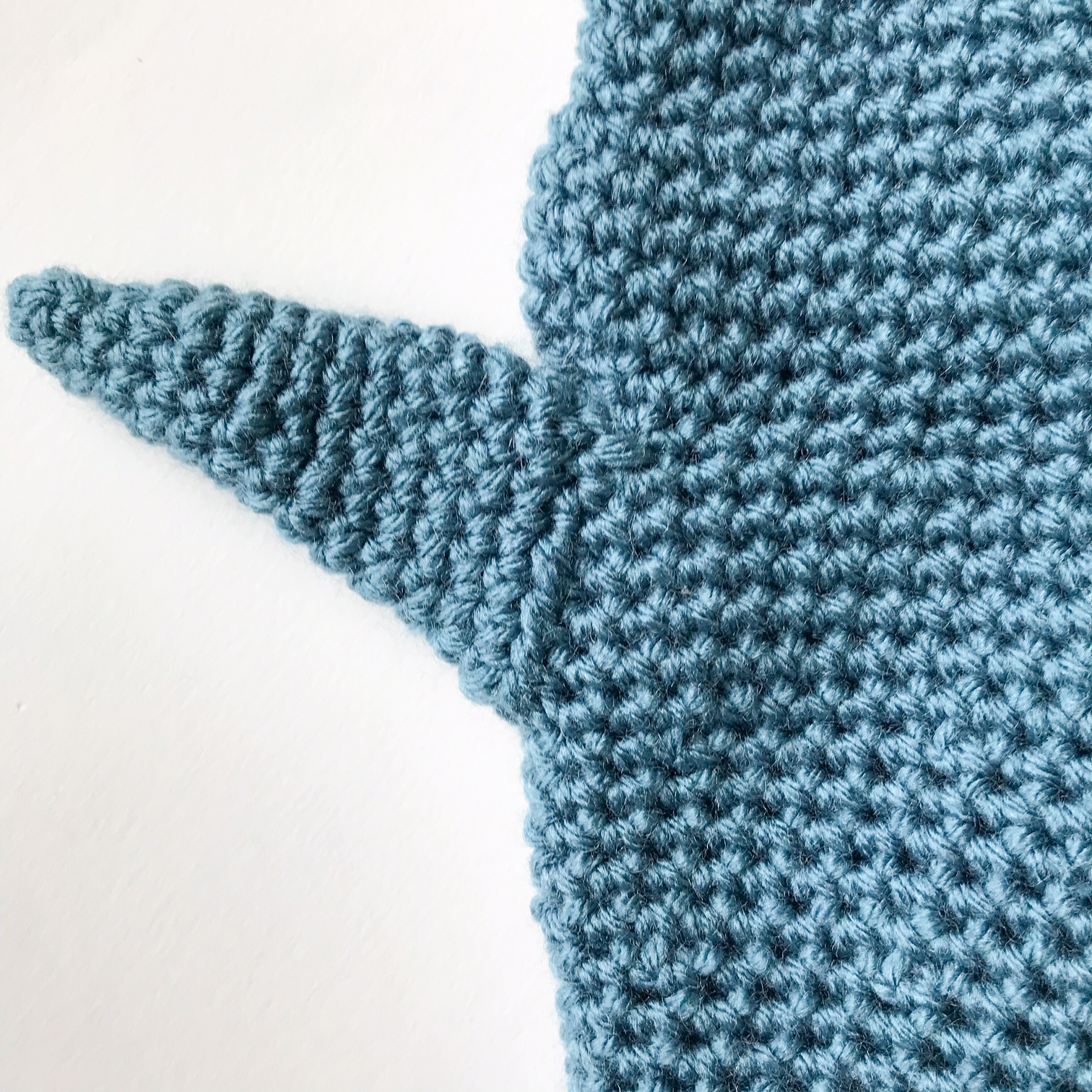 This pattern is worked from the top down, in the rnd, with no joining. The fins and eyes are made separately and sewn on. Pictures below can give more details into the process. I originally used Vanna’s Choice, Dusty Blue for this pattern, but it has become increasingly difficult to find in stores or even online. Any blue/gray worsted weight yarn will work for this pattern!